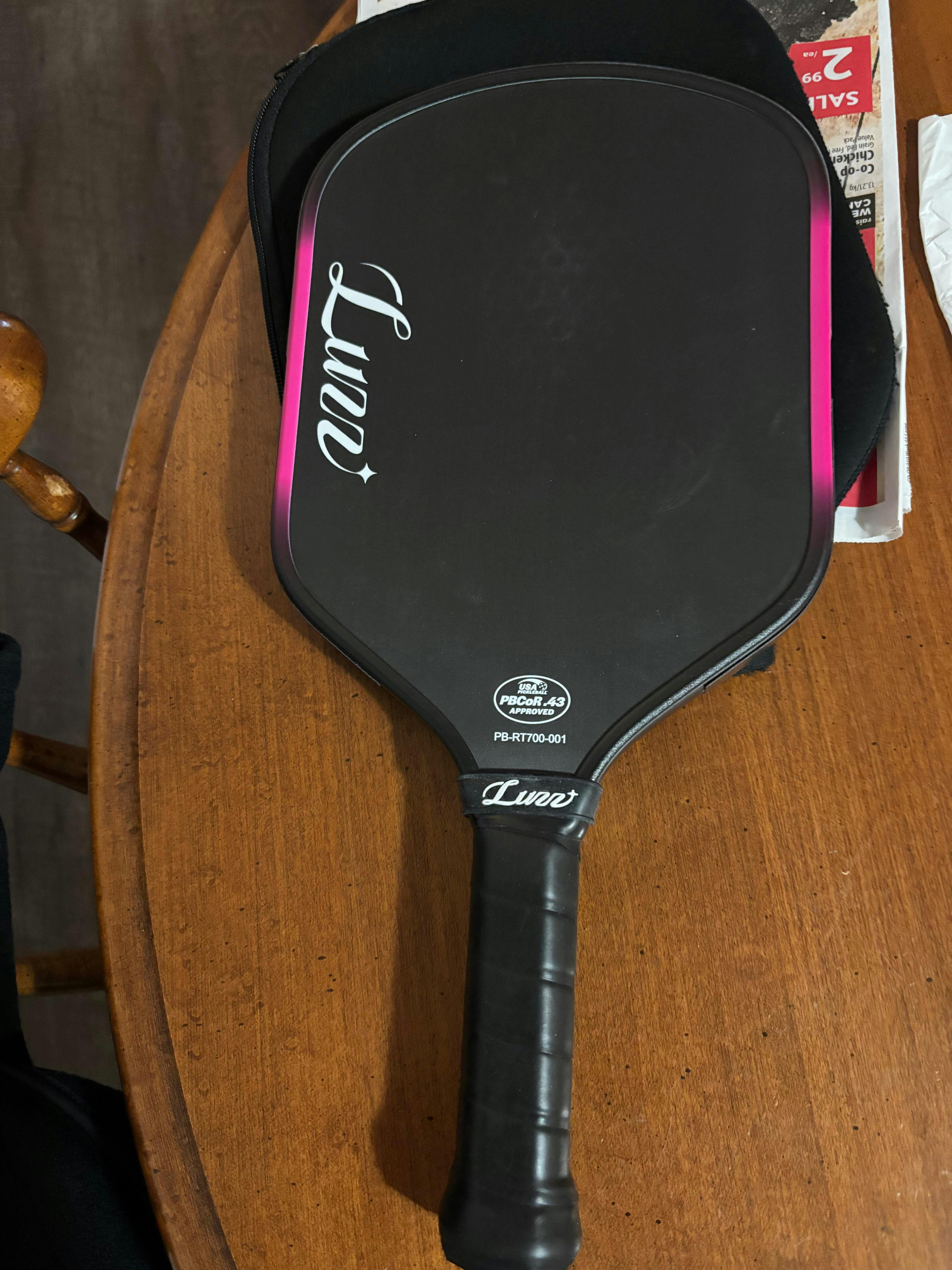 Excellent paddle. Added 5 grams to handle and 5 grams to cheeks. Excellent stability and power. Still adapting to Hybrid Shape. Only recieved the paddle never got the promotional extras. This is my 7 Luzz paddle so far. 4 Cannons, 2 Infernos and the Glider. The main reason got this paddle is for Fire Fights- fast and powerful at the net. Will know more when it breaks in.